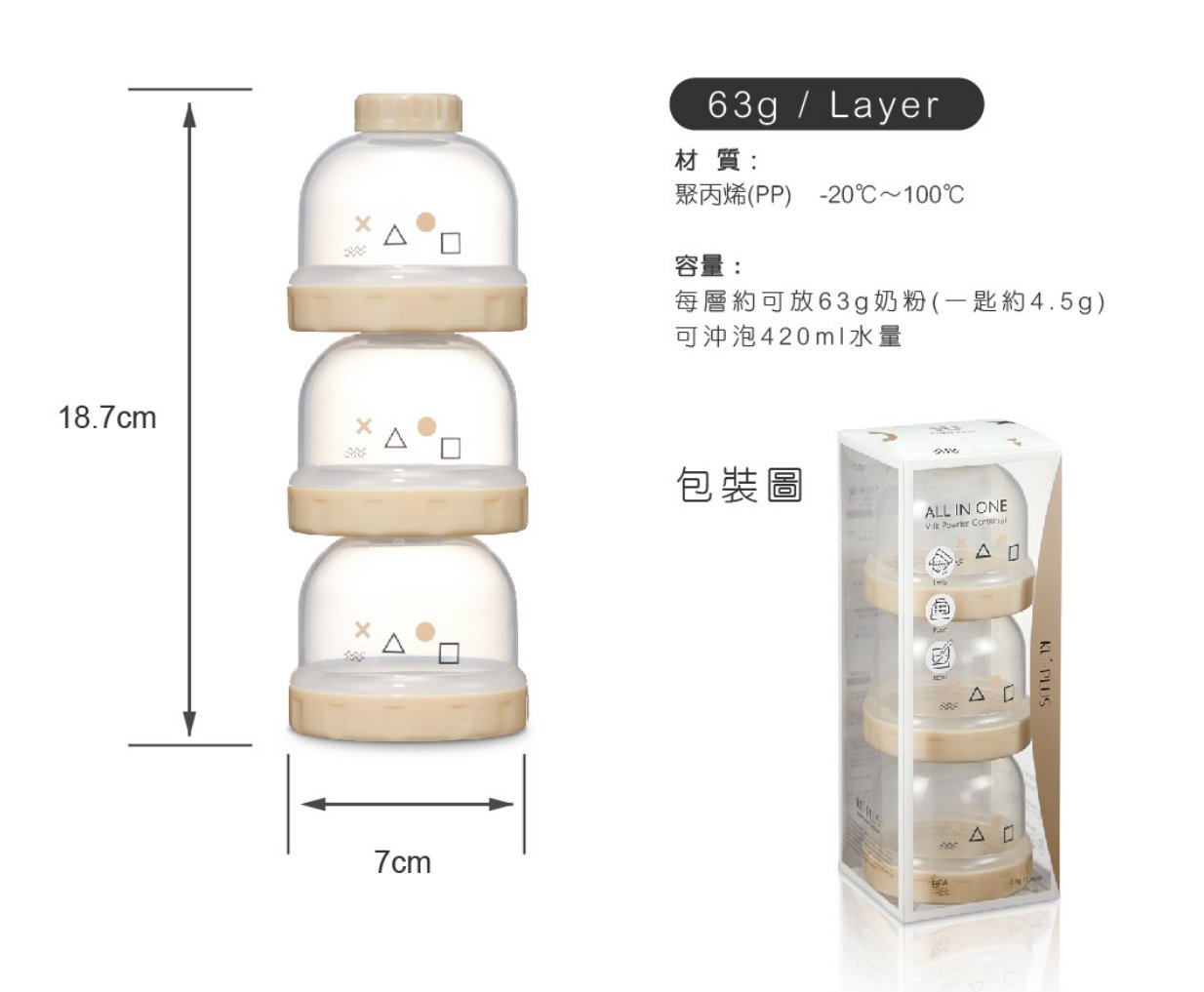 ─ 三層收納,可當保鮮盒分裝寶寶副食品、零食等,也可依照需求攜帶,感受堆疊好整理的樂趣。