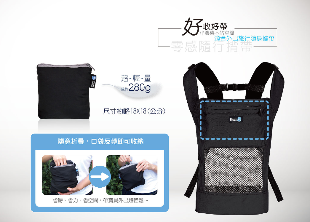 酷咕鴨零感隨行揹帶,超越零感,輕盈無限輕量材質,隨身攜帶使用;隨意折疊,口袋反轉即收納,讓您揹上最輕盈的負擔,