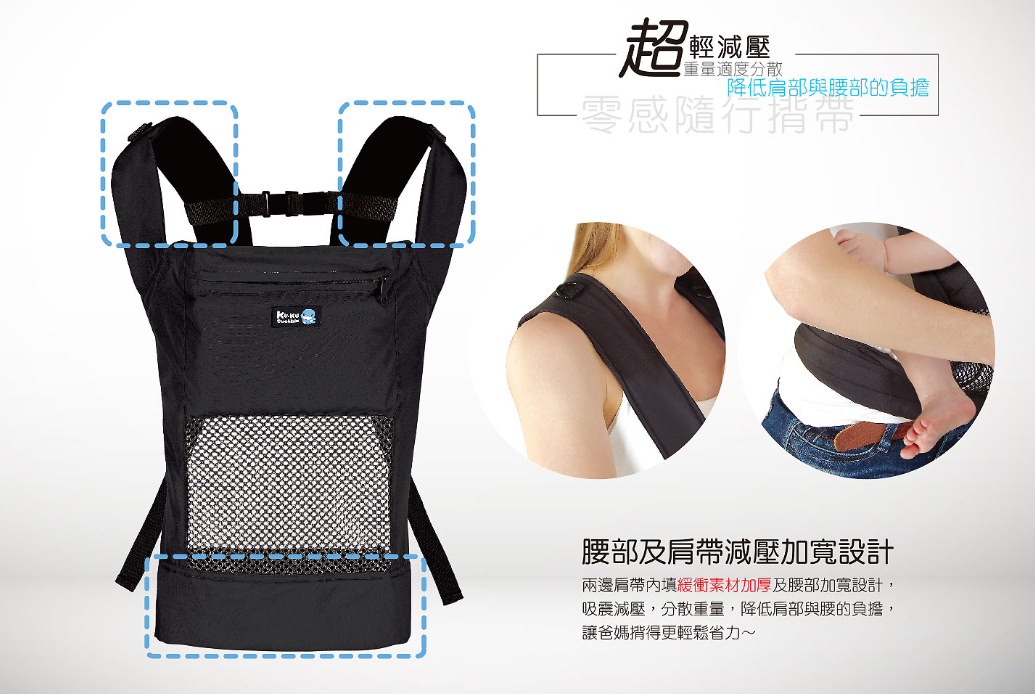 揹帶加寬設計酷咕鴨零感隨行揹帶,無論前抱式或後揹式,